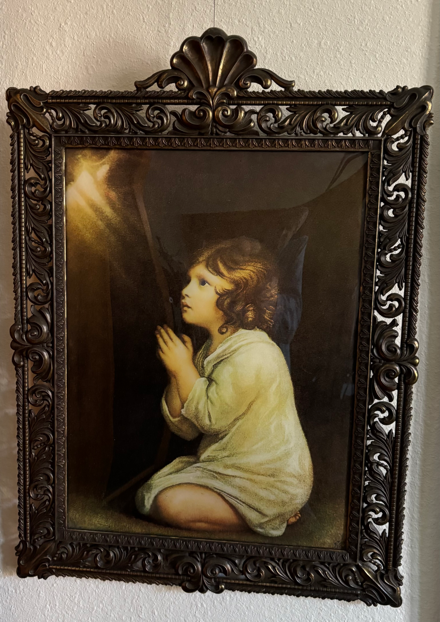 Brass-framed Print After Sir Joshua Reynolds titled “Infant Samuel Praying”